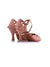 Sandália de dança modelo semi-fechado em pele e forrado a cetim bronze, totalmente forrado em crystal strass