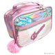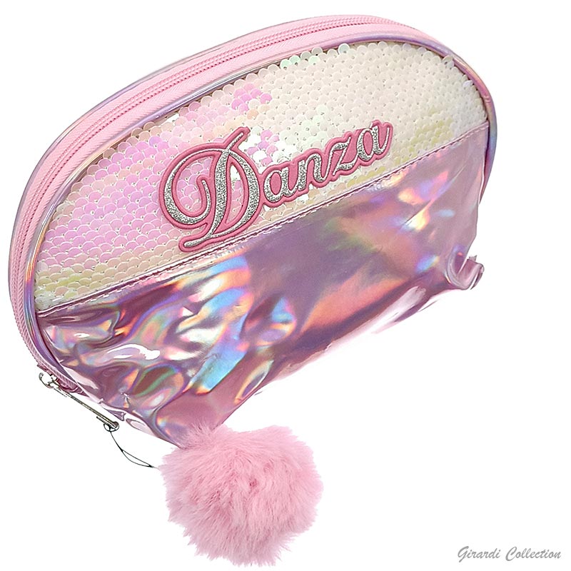Bolsa de cosmética de dança, em lantejoulas e com pompons de pelo sintética.