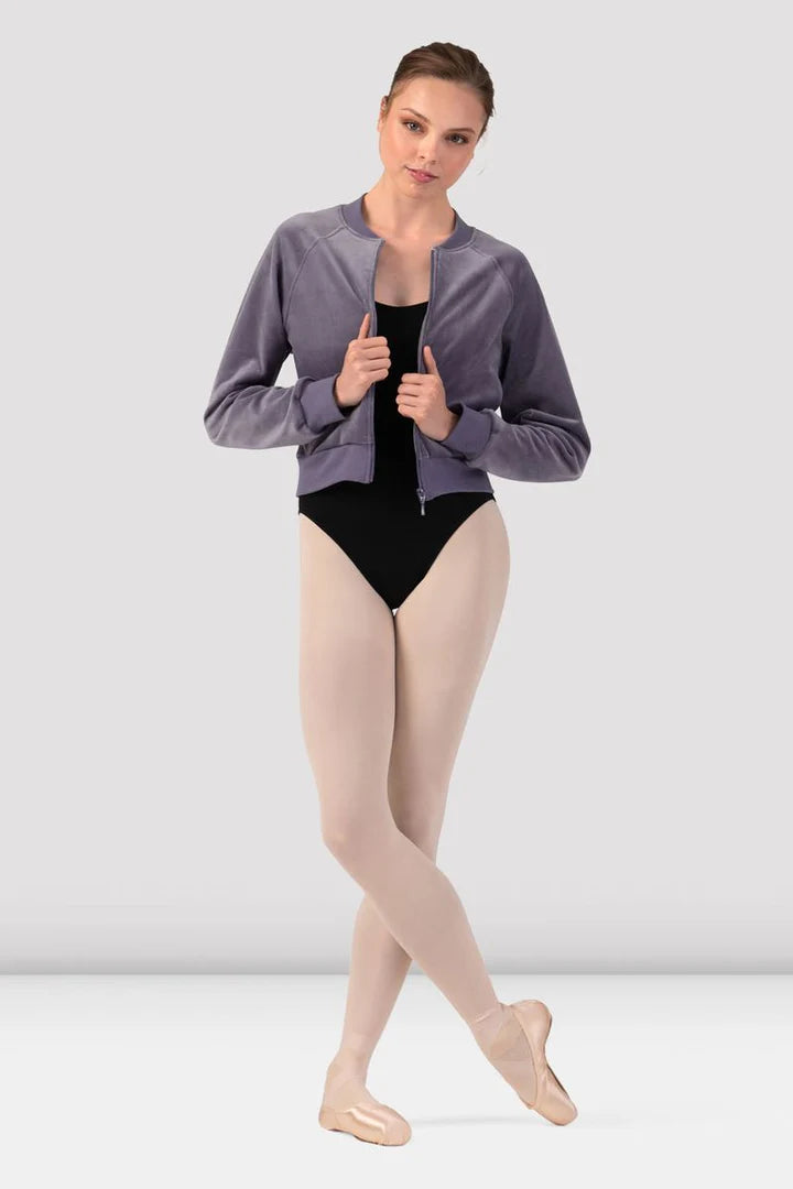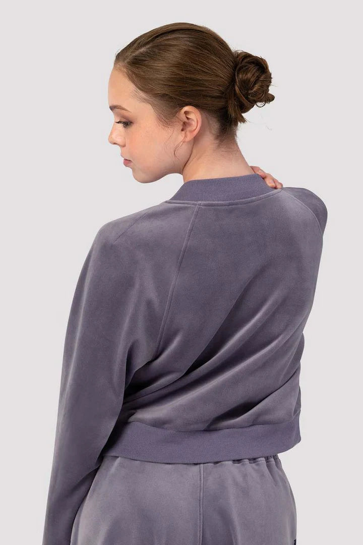 O Casaco Amanda de Veludo para Mulheres possui mangas raglan, punhos, gola e barra canelados, além de fechamento frontal com zíper. Combine com a calça de treino feminina Gloria de veludo para um conjunto luxuoso e perfeito para se aquecer.