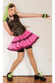 Vestido com calção, de adulto, com malha transparente em tons de dourado e castanho.