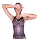 The Migaru Yoko Special Print leotard features a high neckline and transparent back details.