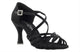 Dance shoe model semi-closed in black satin and nubuck, with a buckle adorned with crystal strass.