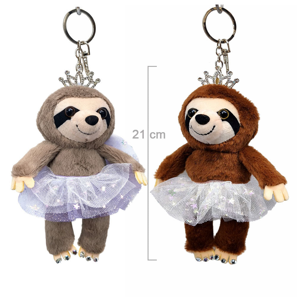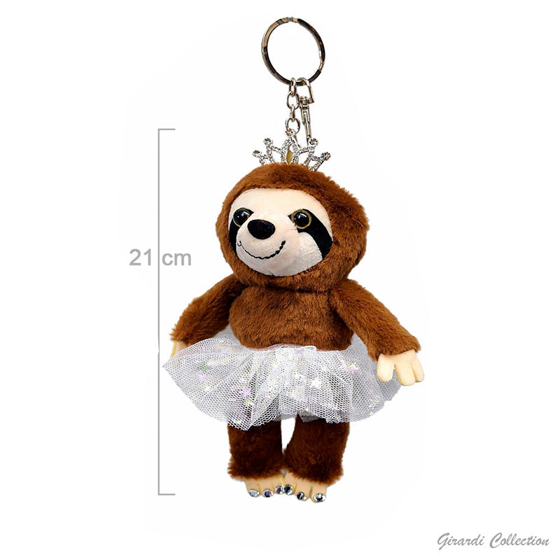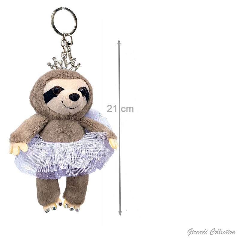 Porta-chaves de preguiça bailarina com tutu e coroa.