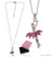 Colar em aço com pendente de bailarina em aço e zircónicas fuchsia, da marca Girardi.