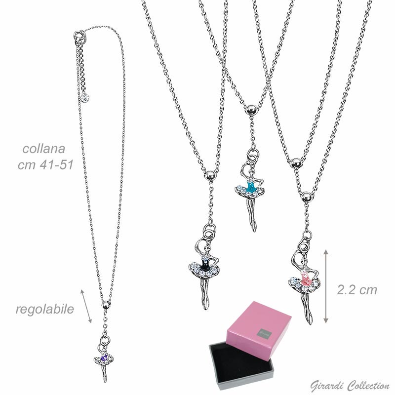 Colar em aço com pendente de bailarina colorida e brilhante, da Girardi.