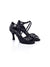 Sandália de dança em cetim preto com interseção em volta do tornozelo