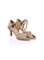 Sandália de dança modelo semi-fechado em Glitter dourado, com fivela em crystal strass