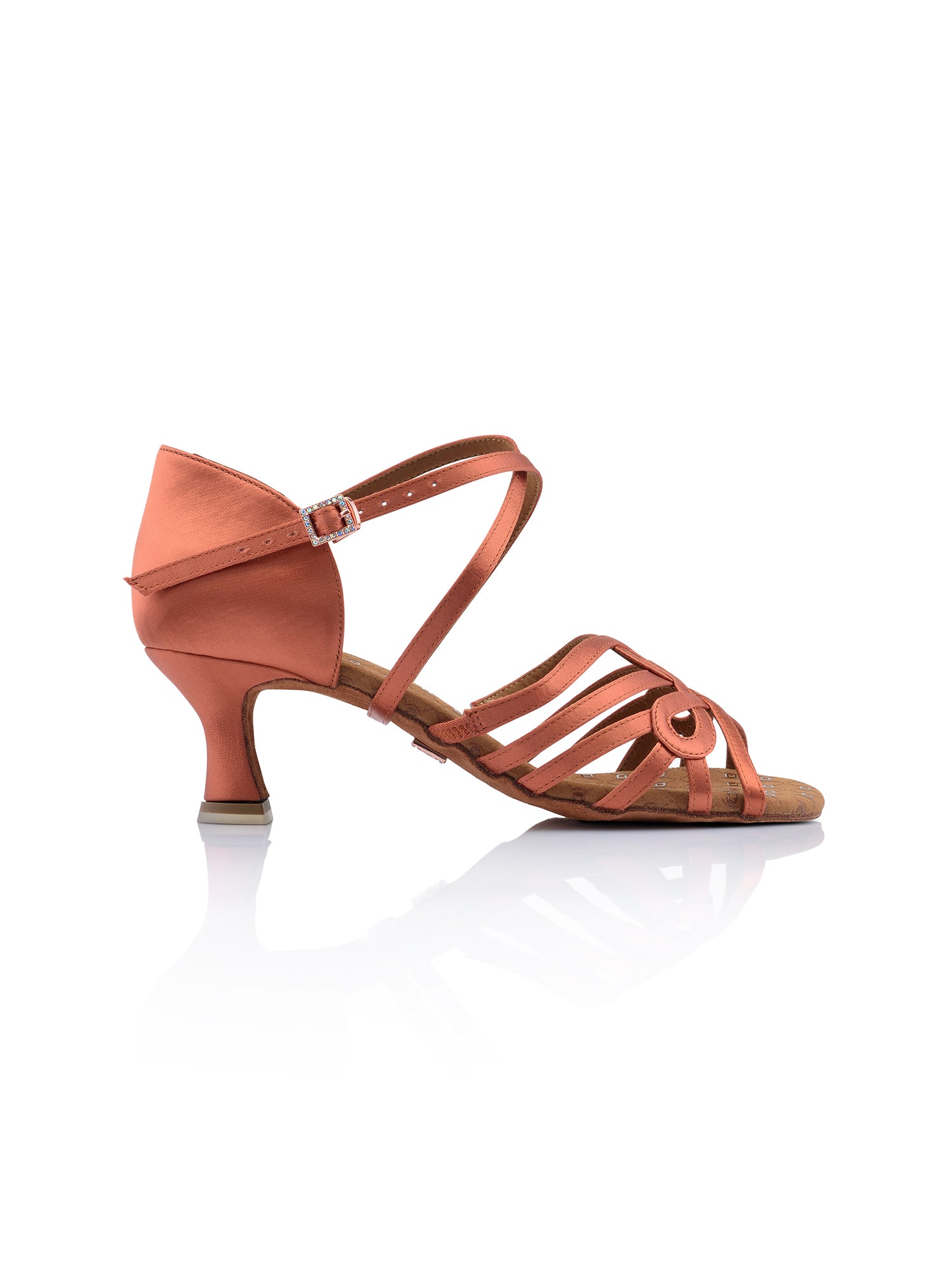 Sandália de dança Dancin Innovation em cetim Dark  Flesh com 5 fitas cruzada, 5 faixas fixas e 1 elástica, palmilha revestida antichoque extremamente confortável, palmilha Next Generation super flexível com palmilha antiderrapante, indicada para todos os tipos de dança
